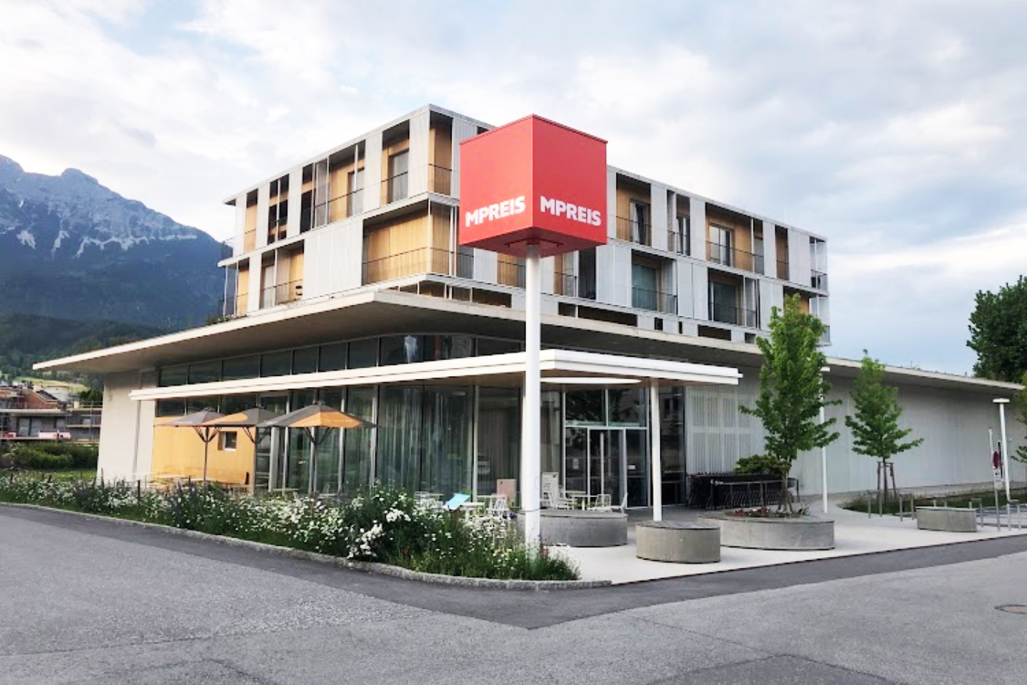 Der Neubau Mini MPREIS-Markt, in Herzen von Kranebitten, wurde im November 2019 eröffnet und sichert die Nahversorgung für ca. 1.500 Einwohner im neuen Stadtteil Gebiet im Westen von Innsbruck. Über 3.000 Artikel bis zu einer Mini Kaffee Theke sind im modernen Lebensmittelmarkt integriert. Ein Vermietungsobjekt im Eigentum der Abenthung Holding GmbH.